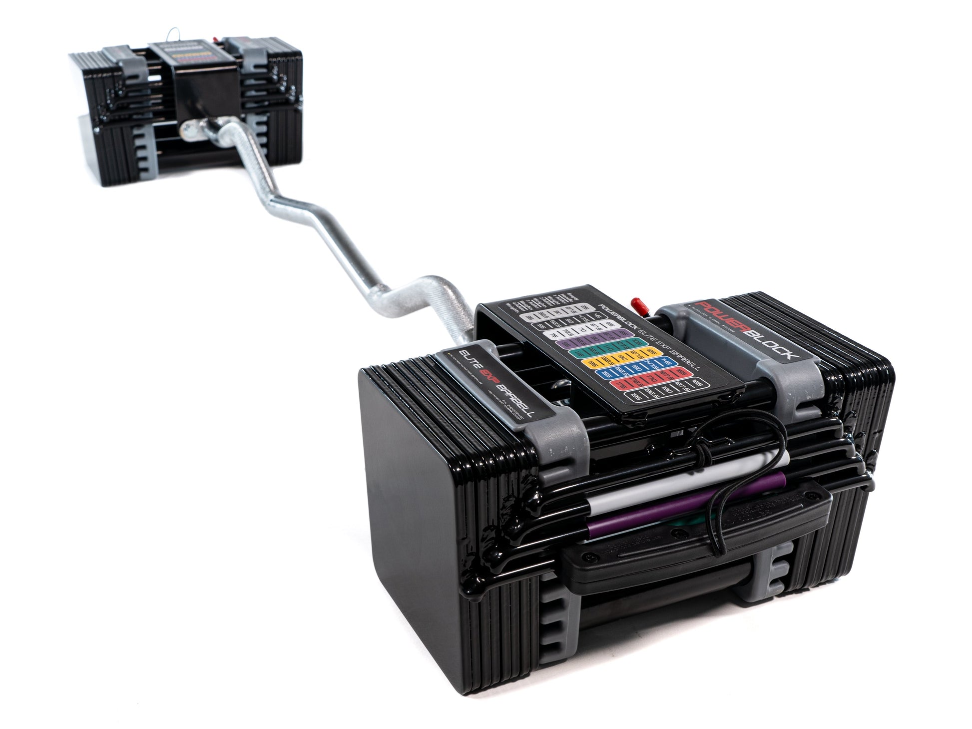 The PowerBlock Elite EXP Curl Bar converts your Elite EXP adjustable dumbbells into a versatile curl bar for focused upper-body training.