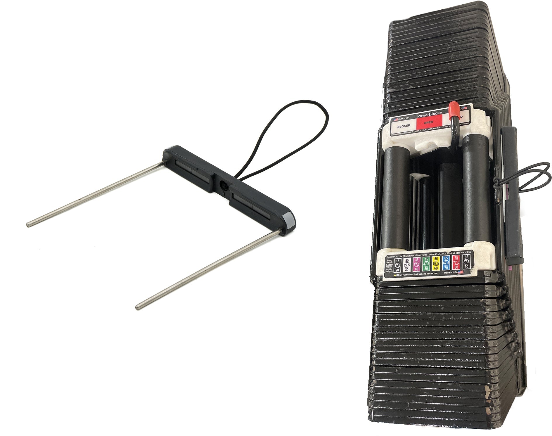 Powerblock Elite Series selector pins are sold as a pair and come with a convenient tether cord for safety. Each pin is specifically designed for compatibility with particular Powerblock sets, so make sure to select the correct one for your model.