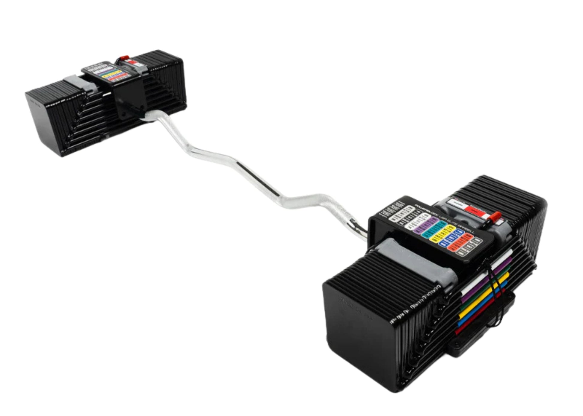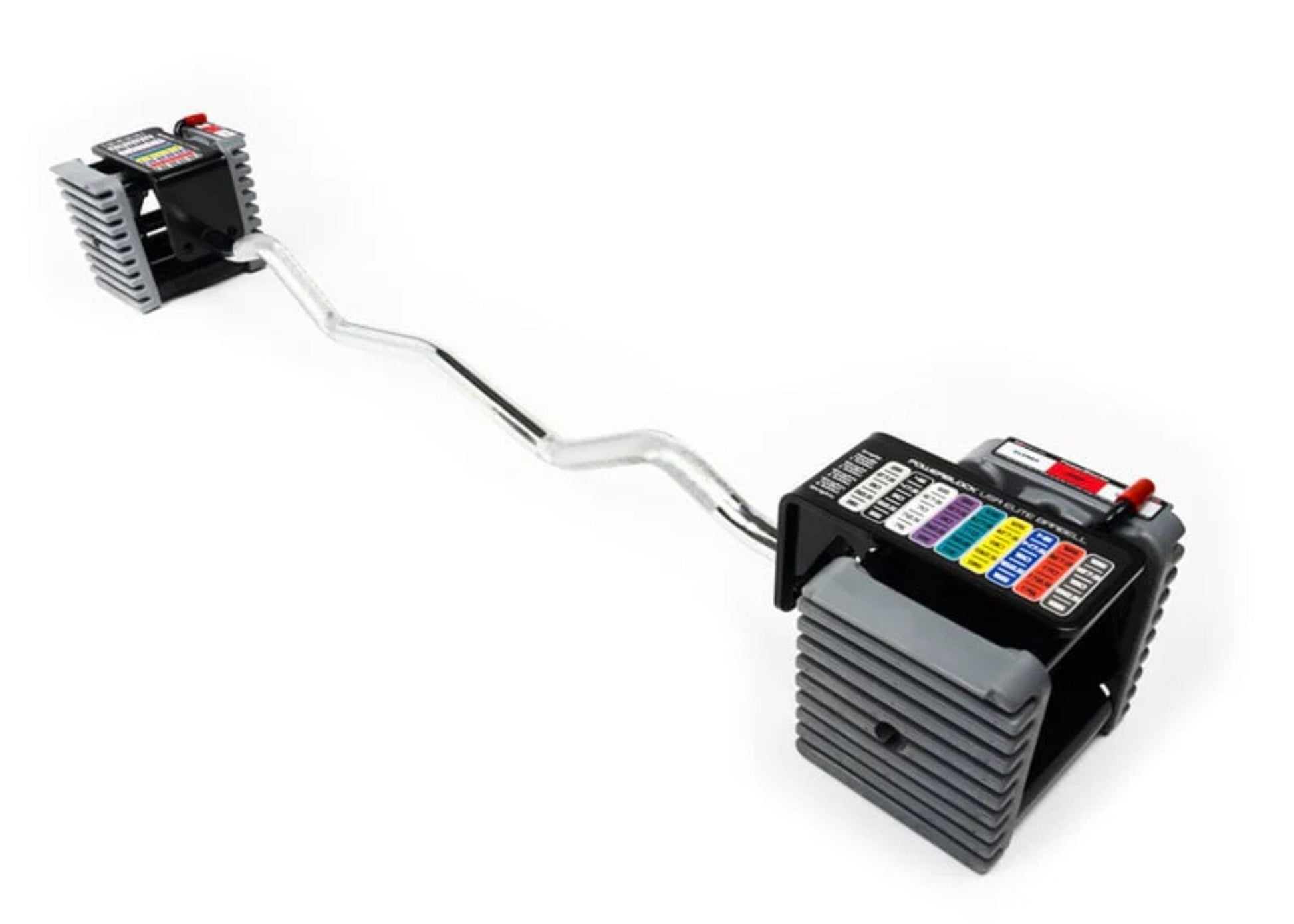 Maximize your home gym with the Elite USA EZ Curl Bar. Use your PowerBlock Elite USA 90 lb Dumbbells to create a space-saving, adjustable barbell for curls, presses, and extensions. Made from 28mm knurled steel, it meets IPF standards for durability and performance.